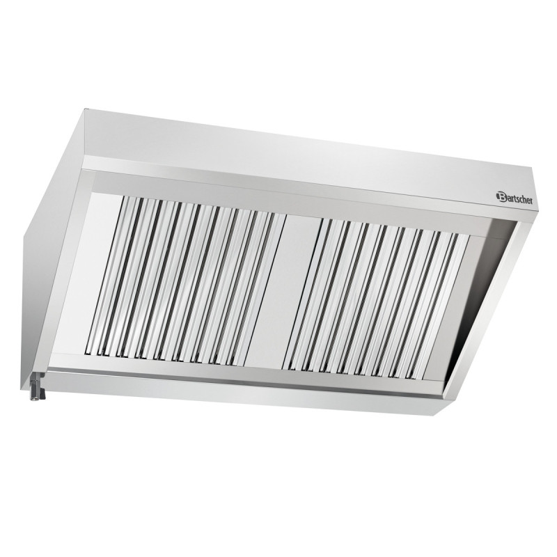 Its peripheral channel and turned-in edges ensure optimal efficiency. Thanks to its labyrinth grease filters, this hood extracts grease particles and ensures a healthy and clean working environment. Its static pressure drop is only 60 Pa, making it an extremely efficient device. Furthermore, it is equipped with a grease drainage tap for easy maintenance.