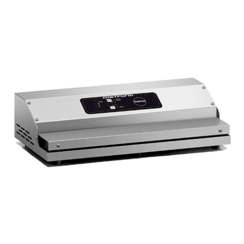 The high power of the sealing bar reduces the sealing time to 2-3 s. Large capacity with a double air pump: 16L/min. Stainless steel construction. Solid handle. Only suitable for embossed vacuum bags with a width of up to 406 mm. Weight: 6.9 kg.