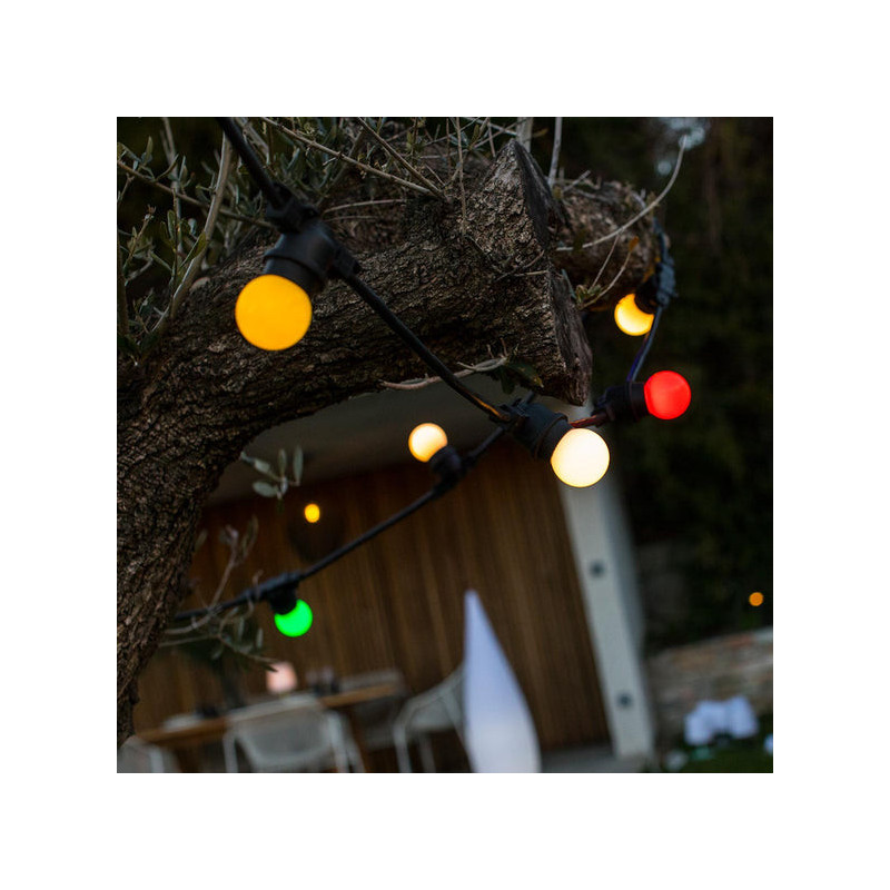 Enfin, cette guirlande avec abat-jour en bambou naturel mesure 3,8 m et se compose de 10 ampoules qui sont protégées contre les éclaboussures et les UV.